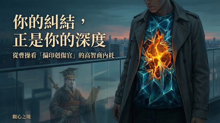 這種格局如同同時踩下油門與煞車,讓才華(傷官)常受制於內在的多疑與完美主義(偏印),導致強烈的心理內耗。